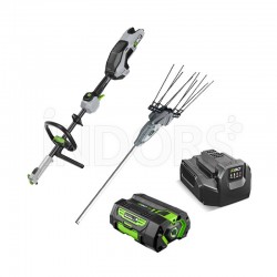This EGO Multi-Tool Kit allows you to tackle various gardening jobs with a single product and multiple accessories included in the purchase together with the battery, the fast charger and the battery backpack.