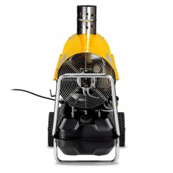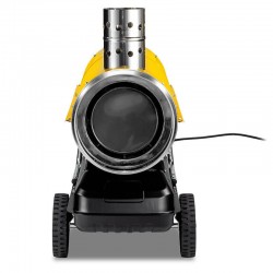 The resulting fuel-air mixture is then vaporized and ignited in the combustion chamber, which is constantly circulated and cooled by external air pushed toward the heater's front outlet by a fan. Unlike direct-fired heaters, in this type of machine, the combustion products are vented outside through an exhaust pipe.