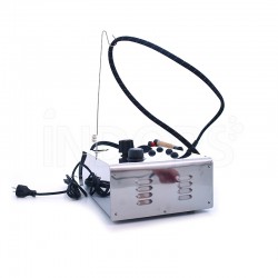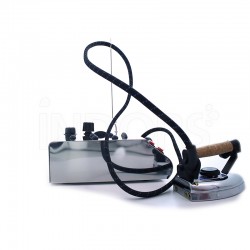 There is a cold water tank connected to the boiler: through a water pump with non-return valve , the water contained in the tank for continuous non-pressurized charging automatically enters the boiler . The boiler resistance brings the water to temperature and pressure: steam comes out from the solenoid valve, activated with a button placed on the iron or gun.