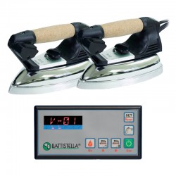 The Battistella Plutone is a professional ironing system equipped with two irons and a large-capacity boiler for continuous ironing. Made with high-quality technical materials, the Battistella Plutone is the ideal solution for customers looking for a professional steam generator.