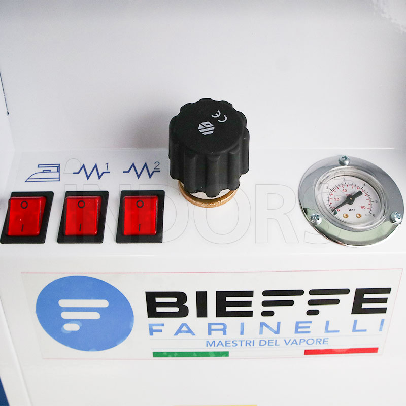 Bieffe Farinelli BF214 has a boiler capacity of 2.8 L with automatic refill, power of 900+900W and max. pressure 3 bar. The iron supplied has a power of 850W and completes the picture for professional use with the heated surface of 700W+700W together with the Aspirante function of 150W+150W+150W.
