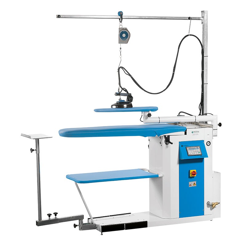 These professional functions aim to optimize efficiency even when dealing with large volumes of garments to be ironed . Its high-quality features guarantee excellent performance for professional users , ensuring smooth and flawless work. Including an EOS 900 W iron and equipped with a control console, this industrial ironing board allows for simple control of the settings.