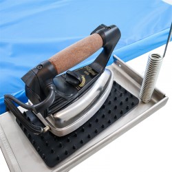 Included with the ironing board is the original Battistella 800W EOS model iron with cork handle, which ensures an ergonomic grip to lighten even the most demanding workloads.