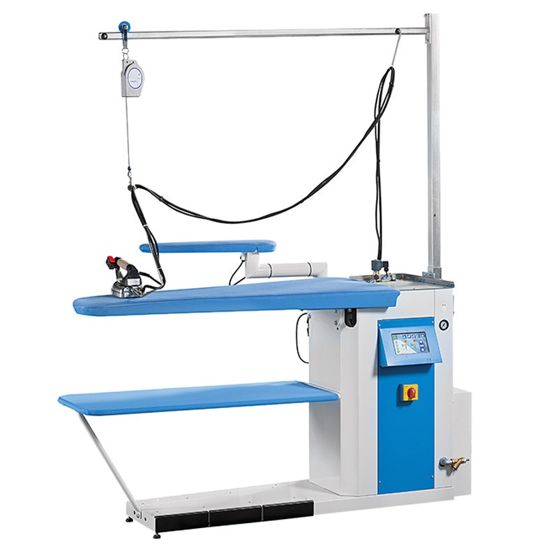 This Battistella Eva Vap Max ironing table has a working pressure of 5 bar, ensuring remarkable performance with the steam function. Steaming the table is often used in laundries to iron heavy garments (wool) that require steam even from the table.