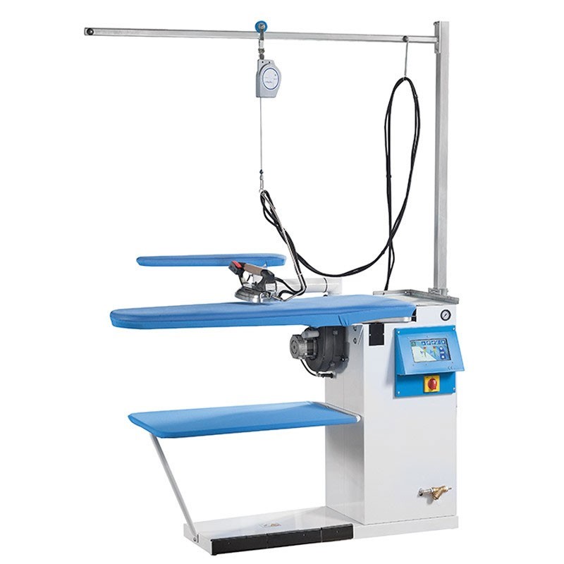 The Battistella Asia Max Vap Ironing Table is an excellent choice for industrial use , equipped with a blowing and vacuum function , touch screen controls, an iron, and a 6-liter stainless steel boiler . This device ensures efficiency and precision during ironing sessions, and its features make it an excellent ironing system for professional users .