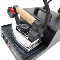 Detail photo of iron included in Michelini Black Pro. This ironing system also has a thread holder.