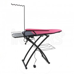 This professional ironing board is adjustable in 8 positions, for comfortable use based on the height and needs of the operator.