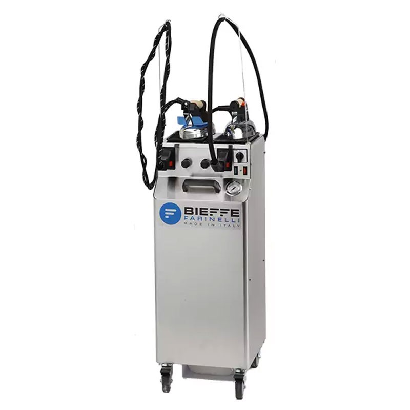 Bieffe Farinelli Steam Iron BF425S02 is a professional steam generator for ironing, designed to meet the needs of laundries , tailors , hotels and communities . Equipped with two workstations with 1.5 kg Bieffe irons , it allows for quick and efficient ironing, integrating advanced features such as automatic water refill and steam regulation.