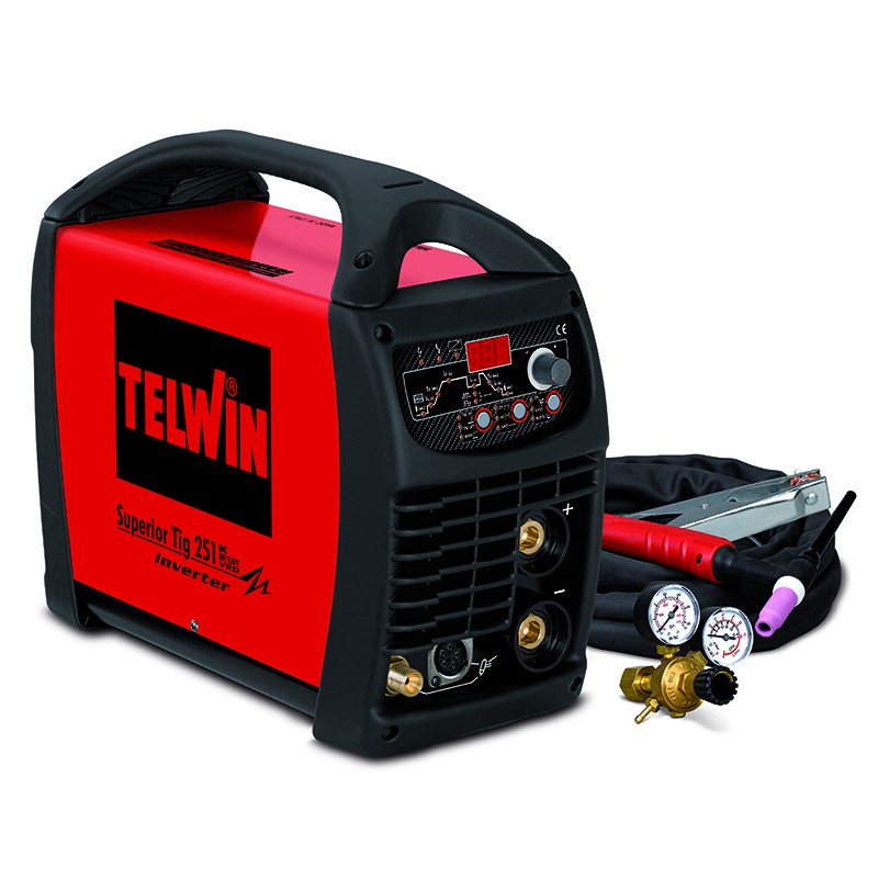 Telwin Superior Tig 251 DC HF/LIFT VRD is a TIG (high frequency HF or LIFT striking), PULSED TIG and MMA inverter welding machine in direct current ( DC), microprocessor controlled, ideal for use with different types of materials such as stainless steel, titanium, copper, nickel and alloys .