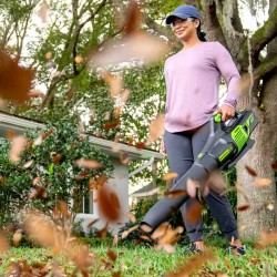 The Greenworks GD60ABK4 battery-powered leaf blower is the perfect solution for efficiently cleaning gardens, driveways and outdoor spaces, combining power, lightness and latest-generation technology . Equipped with a high-performance brushless motor , the GD60ABK4 leaf blower guarantees greater autonomy , long life and reduced maintenance , surpassing the performance of traditional petrol-powered blowers.