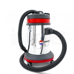 The Biemmedue vacuum cleaner has a large 40-liter stainless steel tank positioned on a base equipped with 4 non-marking rubber pivoting wheels to facilitate movement; there is also a rubber bumper to protect against impacts against furniture and walls. The machine is complete with professional accessories and filters, with all the components necessary for cleaning floors, corners and crevices, car interiors and more.