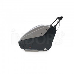 The collection container has a capacity of 45 L and is easy to empty. The forward speed is 4 km/h , supported by a mechanical advancement system and a brush pressure regulation system .