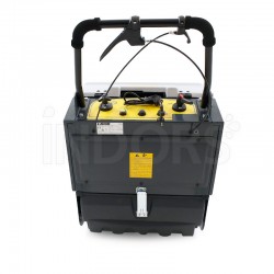 The SWL 700 ET Court Deluxe is powered by a low-maintenance gel battery , making it ideal for both indoor and outdoor use . The integrated on-board charger allows for simple and immediate charging, keeping the machine always ready for use.