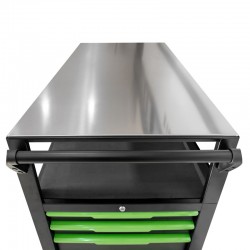 The 18mm stainless steel worktop supports up to 150kg , ideal for operations requiring stability and sturdiness. The worktop is resistant to impacts, scratches, and common workshop solvents , making the cart suitable for intensive and professional use.