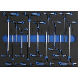 - 9x T wrenches: T10*100, T15*115, T20*120 T25*130, T27*140 T30*150, T40*160, T45*175, T50*200 mm